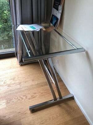 Ich verkaufe unseren wunderschönen Schreibtisch mit Beinen aus Chrom und einer G...