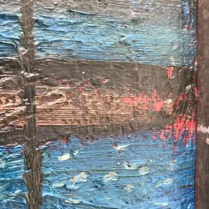 Gemälde von Oskar Althaus ( 1908-1965 ) Boote bei Sonnenuntergang Acryl auf Lein...