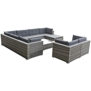 10-tlg. Garten-Lounge-Set mit Auflagen Poly Rattan Grau