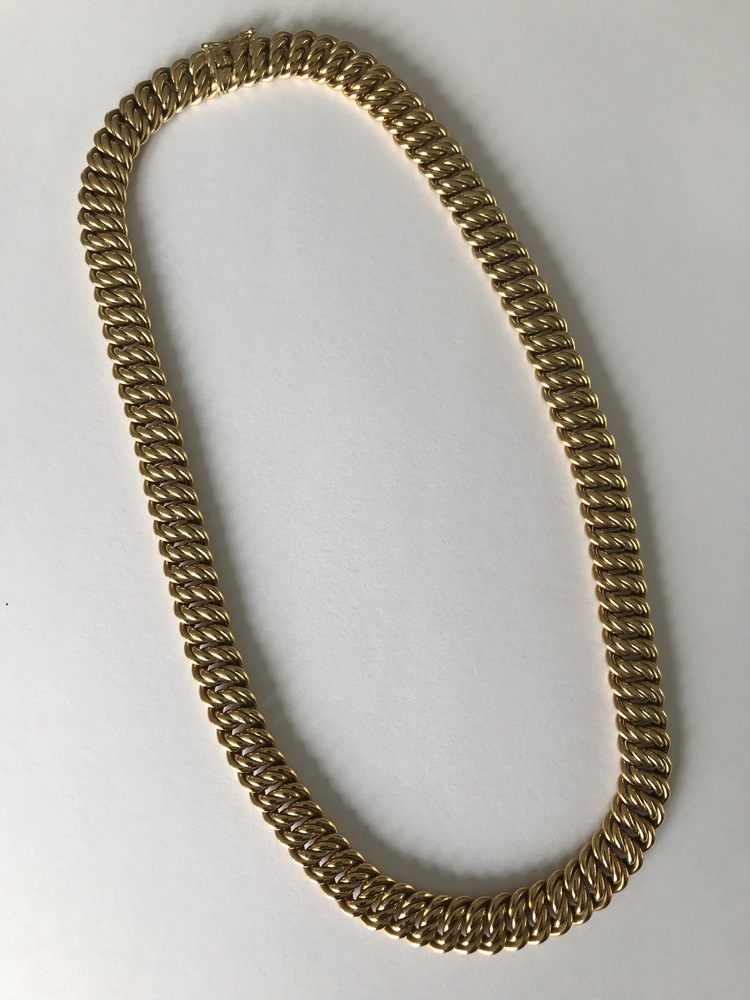 Antikes Gold Collier 18 Karat. Das Collier kann um ca. 6,5 cm verängert werden. Das Verlängerungsteil muss eingearbeitet werden.