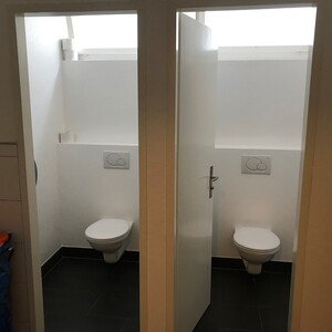 Separate Toilette mit Handwäsche.