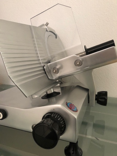 Fabrikneue, original verpackte Marken-Aufschnittmaschine Mistro GS 275 CE.