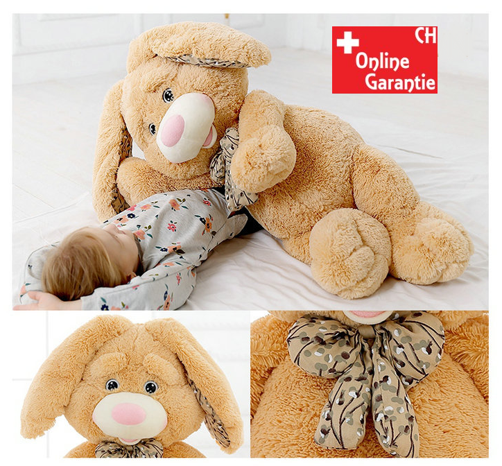 Dieser Hase aus Plüschstoff wird nun dein ständiger Begleiter. Er eignet sich auch wunderbar, um sich in der Nacht an ihn zu kuscheln, wenn du nicht schlafen kannst.