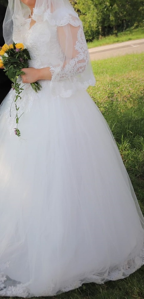 Traumhaftes Brautkleid in Weiss, Grösse 40-44, mit dazu gehörende Schleier. Verstellbares Korsett, da es mit Schnürung hinten beim Rücken.