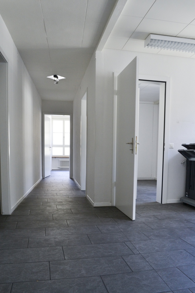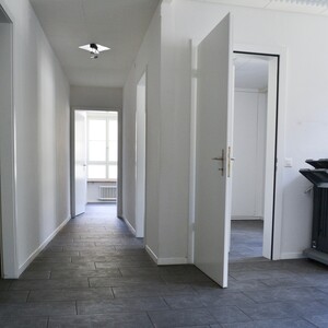 Die Räumlichkeit verfügt über einen Empfangsbereich, drei Büroräume, kleine Küche, Serverraum und WC. Dazu gehört auch ein kleiner Archivraum im Treppenhaus. Es hat diverse Einbauschränke (Entree, in einem Büro und Küche).