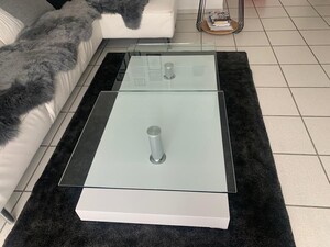Weisser Couchtisch, hochglanz/glas, kleiner Schaden(Foto)
