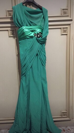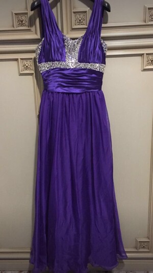 Das blau Kleid wurde einmal gebraucht, die andere zwei (violet und grün) sind neu.