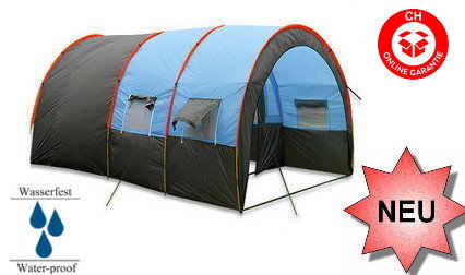 Dieses Tunnelzelt ca. 480cm*310cm*210cm ist das Komfortzuhause auf dem Zeltplatz. In seinem grossen Innenraum finden nicht nur ca. 5-8 Personen spielend einen bequemen Schlafplatz, sondern auch Campingmöbel und Gepäck lassen sich problemlos im grossen Vorraum unterbringen.