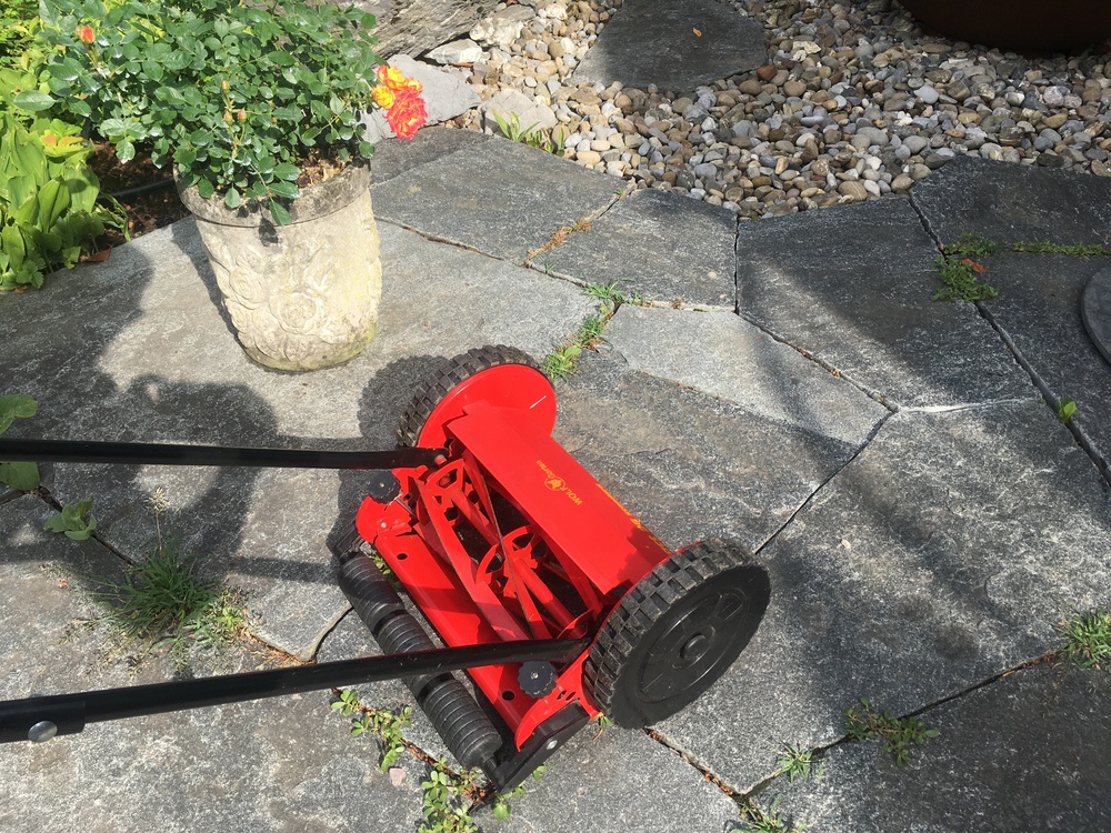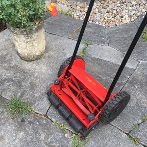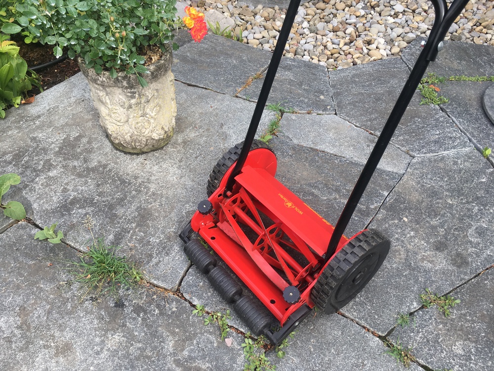 Sehr praktischer Mäher für kleine Rasenflächen.