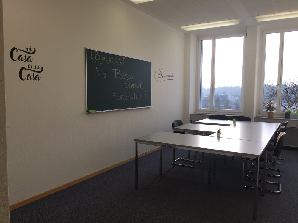 Tische und Stühle für max. 8 Personen, Wandtafel, Hellraumprojektor, Kaffeemaschine.
