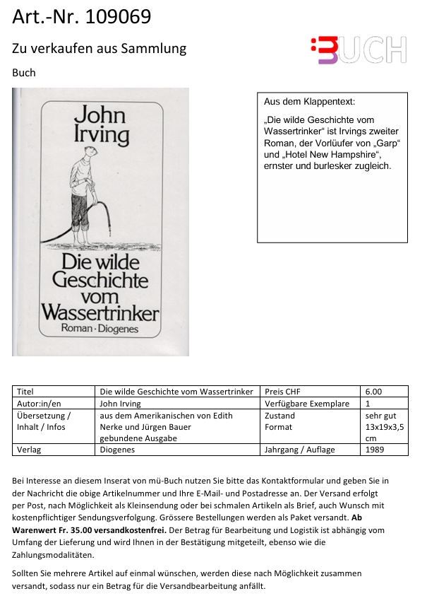 John Irving: Die wilde Geschichte vom Wassertrinker