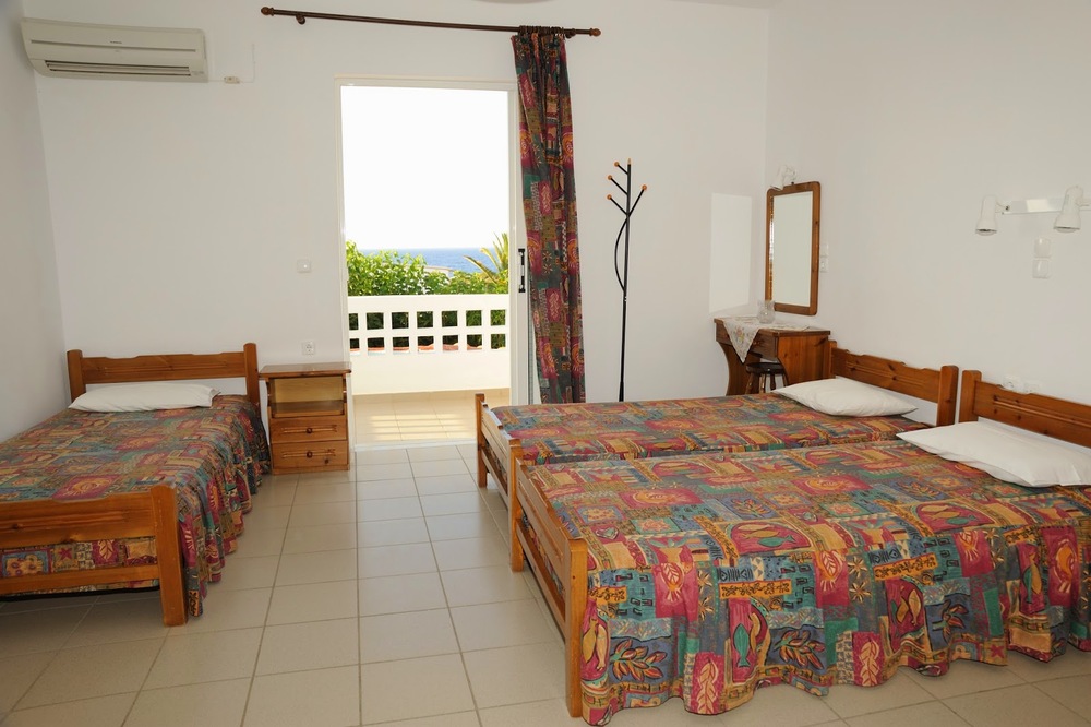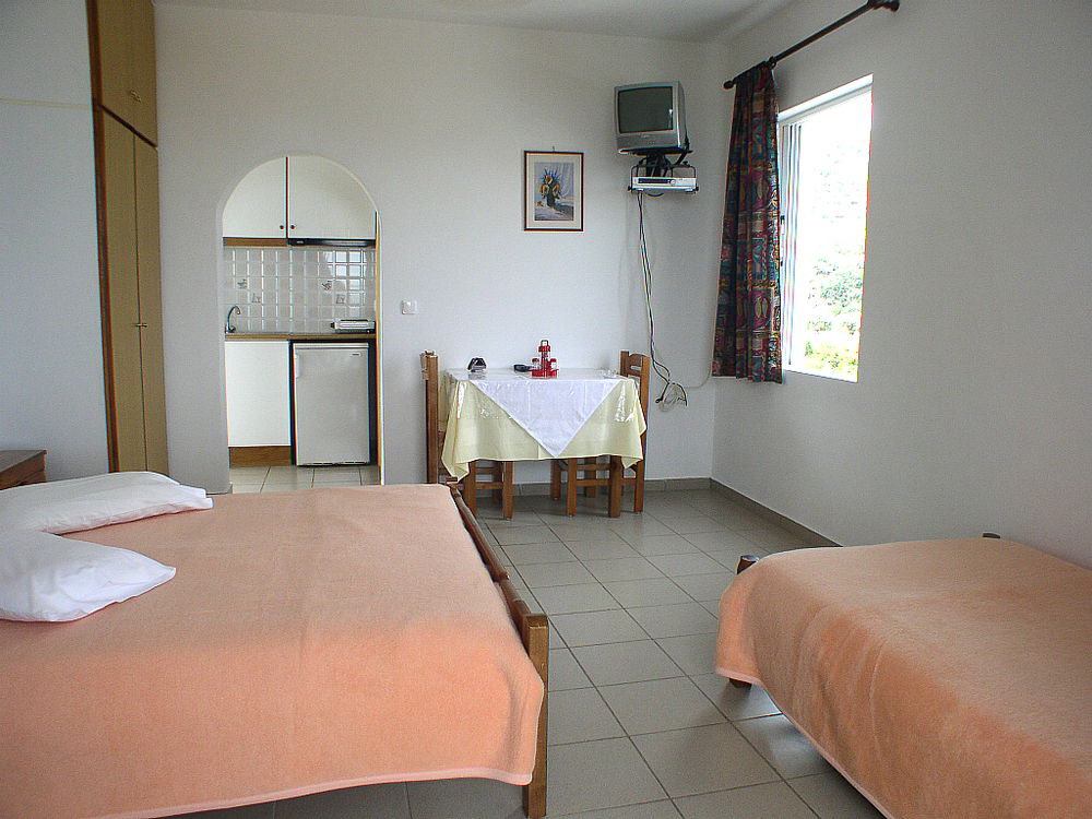 Kleine Ferienwohnungen für 2 bis 3 Personen mit Kitchinette, Badezimmer mit Dusche, Schlafzimmer mit Doppelbett und/oder Einzelbetten, Fernseher und mit Klimaanlage - direkt am Meer.