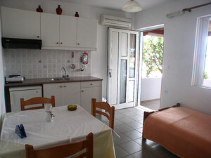 Kleine Ferienwohnungen für 2 bis 3 Personen mit Kitchinette, Badezimmer mit Dusche, Schlafzimmer mit Doppelbett und/oder Einzelbetten, Fernseher und mit Klimaanlage - direkt am Meer.