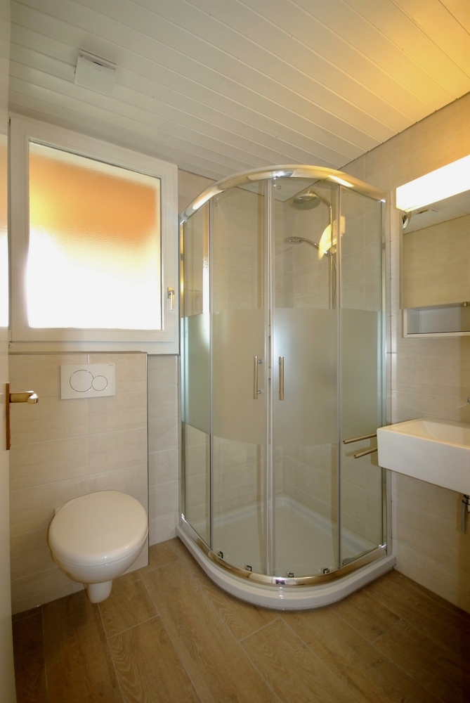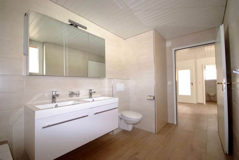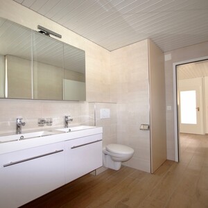 Zwei Badezimmer: einmal mit Badewanne, Doppellavabo, WC, einmal mit Dusche, WC, Lavabo.