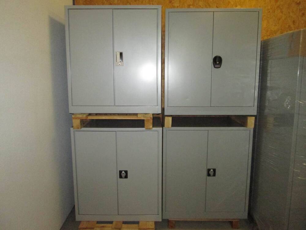sehr schöne Metallschränke von Lista und andere Modelle mit 1 Tablar mit dem Mass 90x65x100cm B/T/H, ebenfalls verschiedene Baujahre Lager, alle Schränke sind abschliessbar und haben 1 Schlüssel, die Tablartraglast ist 50kg oder 80kg, Neupreis eines Schrankes ist Fr. 740.- jetzt für nur Fr. 250.- plus Mwst Stück netto, sollten Sie ein Tablar mehr wünschen kann ich Ihnen dies zum Preis von Fr. 30.- mit passend Haken anbieten ( aber nicht immer für jedes Modell )