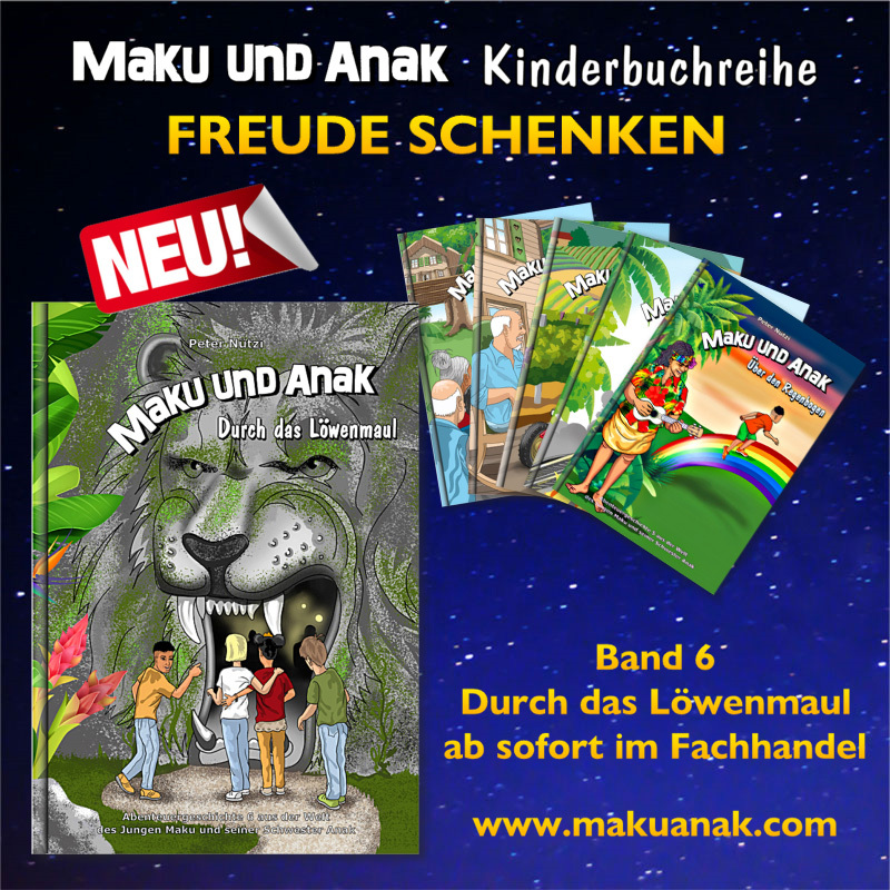 Sie sind bereits geschrieben, die 102 Abenteuergeschichten von Maku und seiner Schwester Anak auf ihrer paradiesischen, früheren Pirateninsel. Die Geschichten sind fest eingeplant bis Dezember 2029. Monatlich erscheint ein neues Buch mit einer neuen, spannenden Abenteuergeschichte. Doch auch im Januar 2030 wird es weitergehen, denn immer neue Geschichten drängen sich mir auf und wollen zu den Kindern.