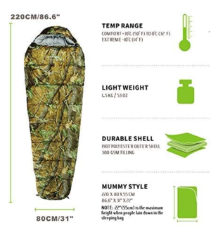 Militär Schlafsack Camouflage Mumienschlafsack Schlack Camping Festival