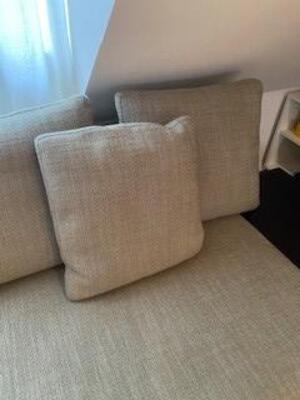 B 242, T 103, H 89cm / Stoff MAXXI 03 Salvia / 1 Ablage Leder / 1 Nackenstütze / 4 Kissen
