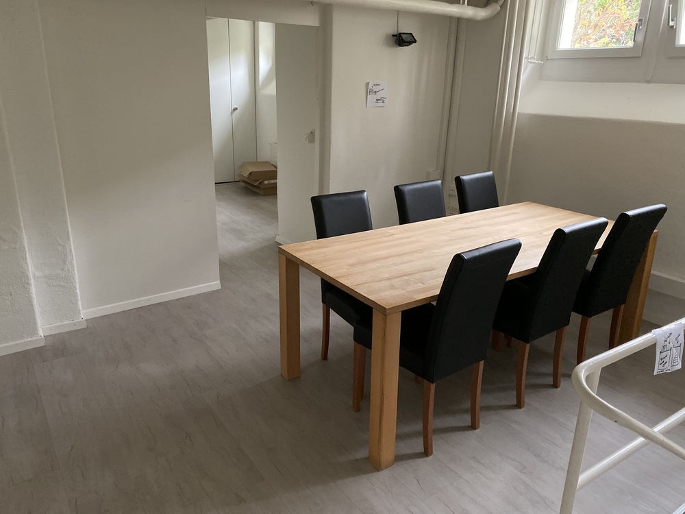 Im OG befindet sich ein Esstisch mit 6 Stühlen und ein Abstellraum.