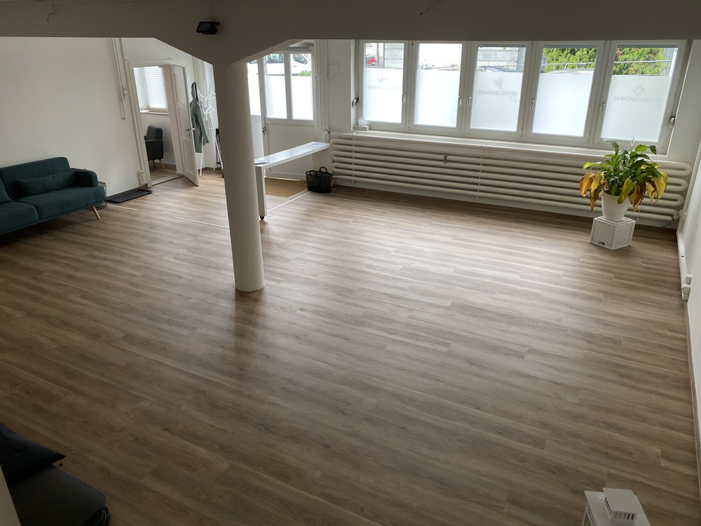 Die kompletten Räumlichkeiten sind auf 2 Stockwerke aufgeteilt. Im EG befindet sich ein eingerichteter Raum für Einzelcoachings mit ca. 20m2 und ein weiterer Raum mit ca. 60m2.
