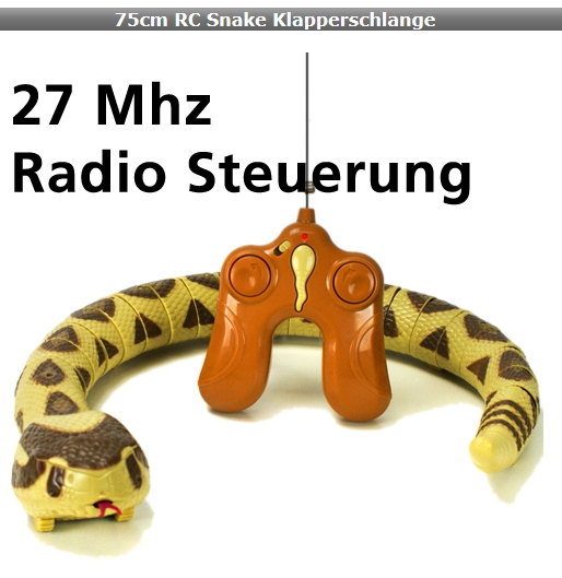 Inserat merkenDie RC-Klapperschlange ca. 75cm bewegt sich wie eine echte Schlange. Ihr Körper ist in mehrere bewegliche Glieder unterteilt, sie hat eine schuppige Haut, eine flinke Zunge. Durch ein kleines Glöckchen in ihrem Schwanz, klappert sie während sie durch die Zimmer schleicht. Per Fernbedienung lässt sich die Schlange nach links und rechts schlängeln.