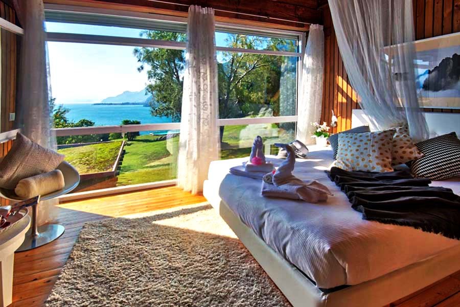 Im Obergeschoss befinden sich 4 Schlafzimmer, jedes mit, TV & Sateliten, schönem Seeblick, und wie folgt ausgestattet: