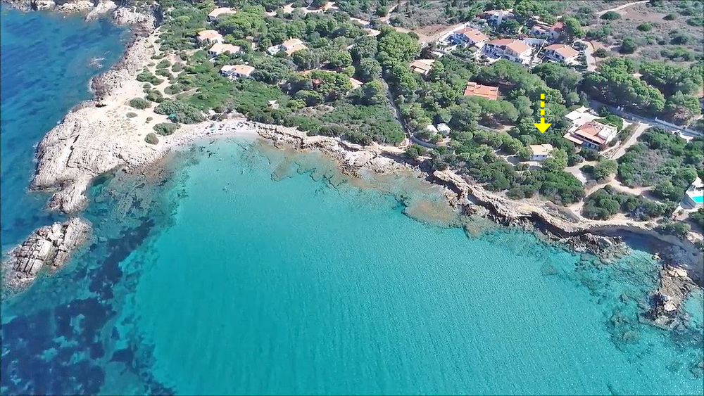 Freistehendes Ferienhaus direkt am Meer und naturbelassener mediterraner Vegetation Nähe traumhafter weißer Sandstrände und kleinen Buchten von "Porto Pinetto" - PORTO-PINO im Süden von SARDINIEN. Sehr geeignet für einen entspannten und erholsamen Urlaub für eine max. Belegung von 4 Erwachsene + 2 Kinder. Auf einer Wohnfläche von ca. 80 qm über 2 Ebenen stehen dem Gast zur Verfügung: 1 großer Wohn-/ Essraum mit Kamin und integrierter Küche - 1 Eheschlafzimmer mit Baldachin - 2 Schlafzimmer mit franz. Ehebetten - 2 Badezimmer mit Dusche/ WC/ Bidet - eingezäunter Gartenbereich mit möbliertem Freisitz und Meerblick.
