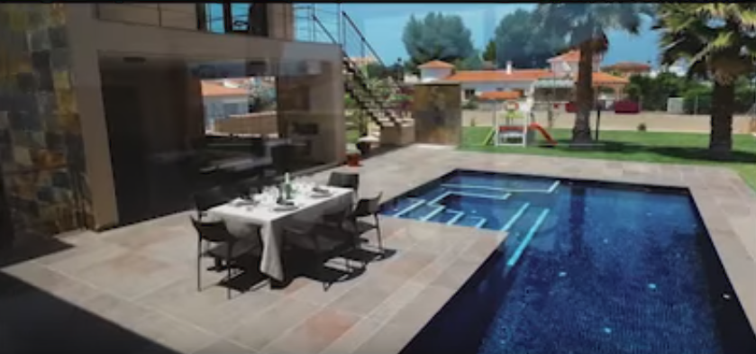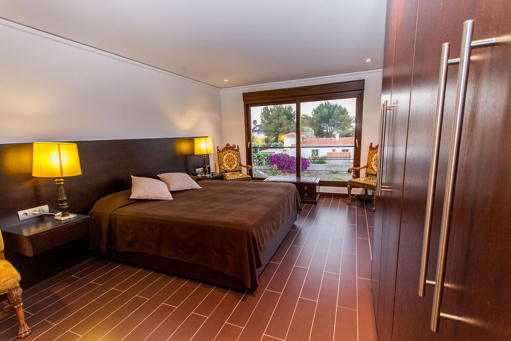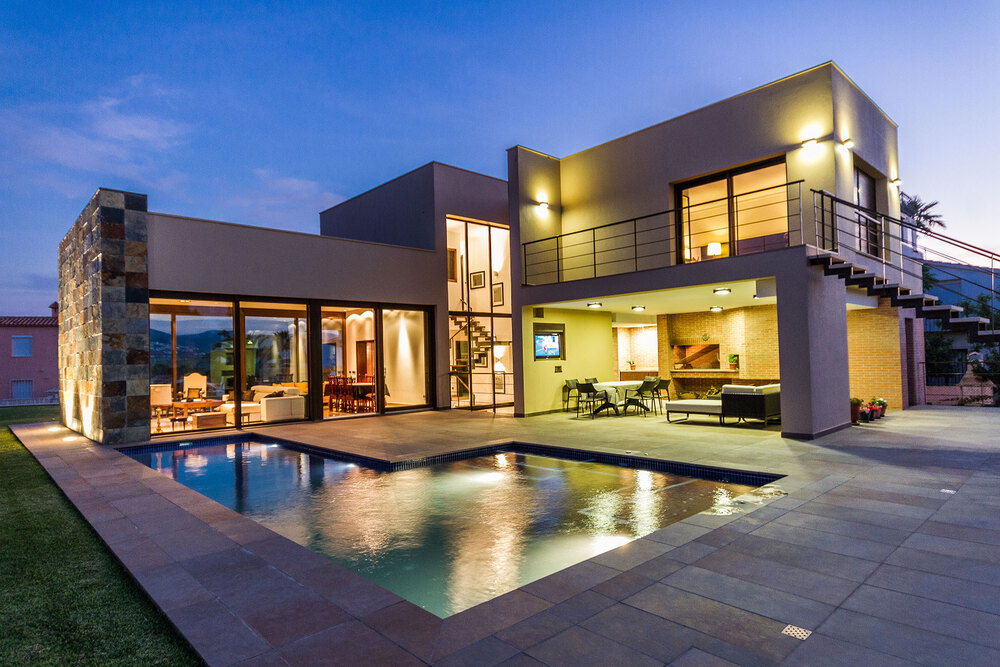 Está situado en una parcela de 1.000 m2 con un jardín de diseño, una excelente piscina con jacuzzi y una de vanguardia de hidromasaje con auto-limpieza y una zona de barbacoa cubierta con salón, barbacoa y horno de leña.