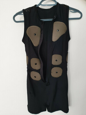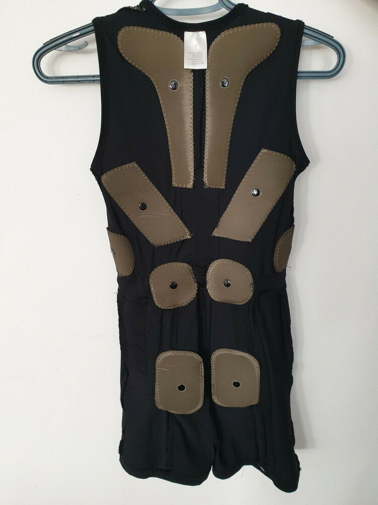 Wie auf den Bildern zu sehen liegen Elektroden an Unterarm, Oberarm, Wade, Oberschenkel, oberer Rücken, unterer Rücken, Bauch, Brust und Gesäß an und bieten somit eine Ganzkörperstimulation mit elektrischen Reizen, entwickelt für die Physiotherapie.