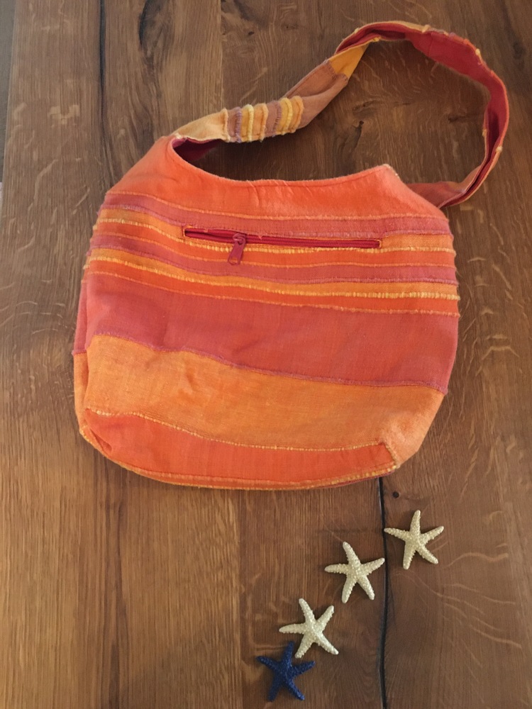 Tragetasche in sommerlichen Farbtönen aus Stoff. Kaum gebraucht.