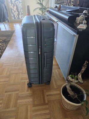 Biete einen äusserst leichten aber robusten 4w Reisekoffer (Trolley) Travelite Air Base, Grösse L (77 x 51 x 30 cm / 105 Liter) in Farbe Eisblau. Mit 4 leichtgängigen 360° Drehrollen, TSA Zahlenschloss und einem Gewicht von nur 3,5 kg. Aus extrem widerstandsfähigem Polypropylen (Hartschale). Ein Jahr alt und in einem sehr guten Zustand (mit den üblichen Gebrauchtspuren). Kann abgeholt oder auch verschickt (plus Versandkosten) werden. Preis CHF 110.00. Bezahlung mit Twint möglich. Bei Interesse bitte eine E-Mail oder SMS danke.
