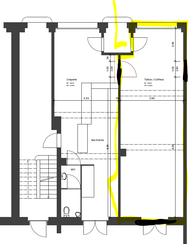 Privates WC für Personal/Gäste auf dem Flur (zur Alleinbenutzung, abschliessbar)