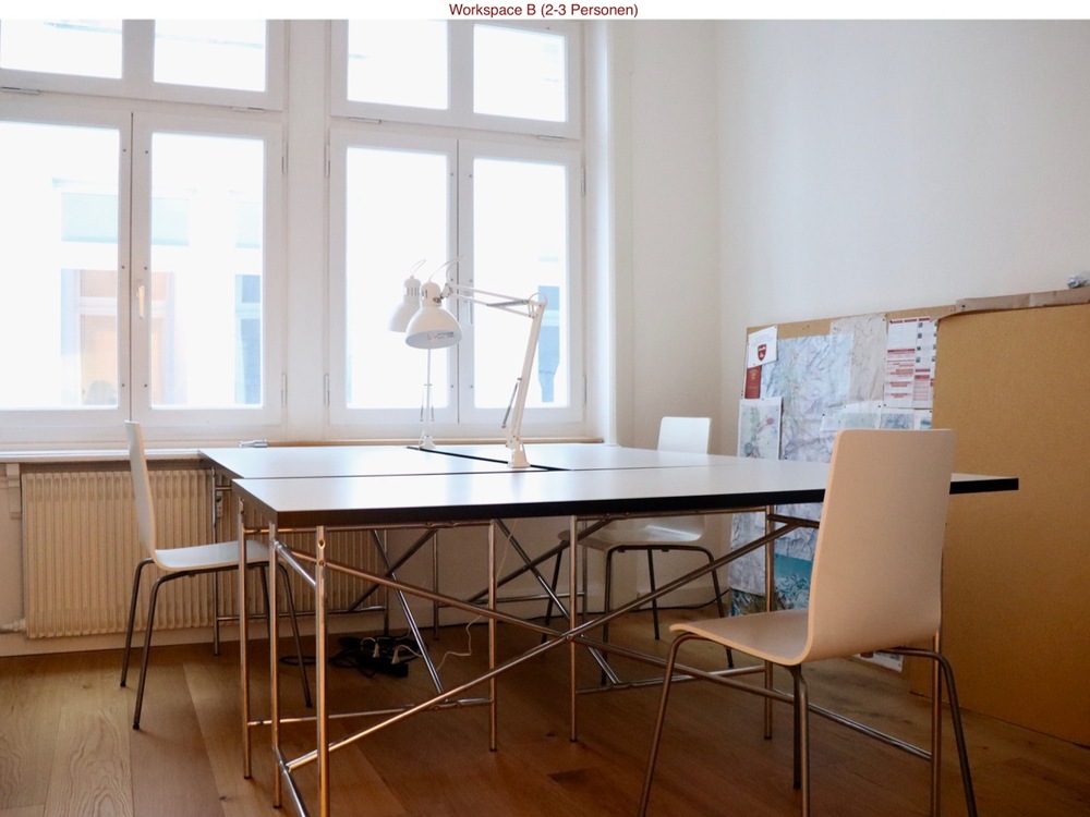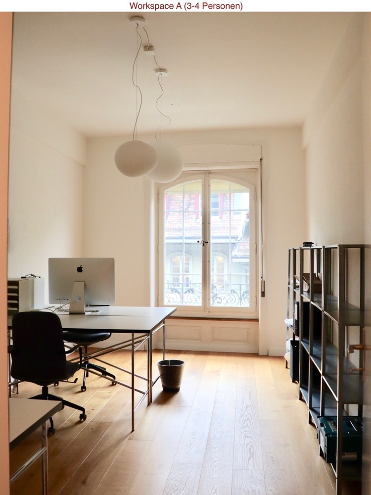 Wir vermieten per sofort oder nach Vereinbarung einen Workspace in unserem grosszügigen Altstadt-Büro in der Berner Altstadt. Es stehen zwei Workspaces zur Verfügung. Einen werden wir vermieten, den anderen möchten wir als gemeinsam genutzten Focus Room und Besprechungszimmer nutzen. Workspace A verfügt über drei bis vier Workstations, Workspace B über zwei bis drei. Die Workspaces sind mit Tischen, Tischlampen, Stühlen sowie Pinboards ausgerüstet.