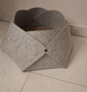 Hübsche Kratzhöhle für Katzen, in Form einer Blüte, aus grauem Filz, mit austaus...